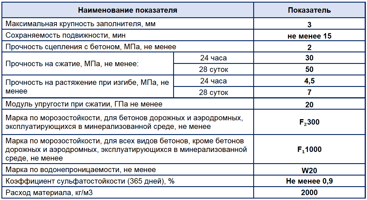 Прочность на сжатие 28 суток: не менее 50 МПа