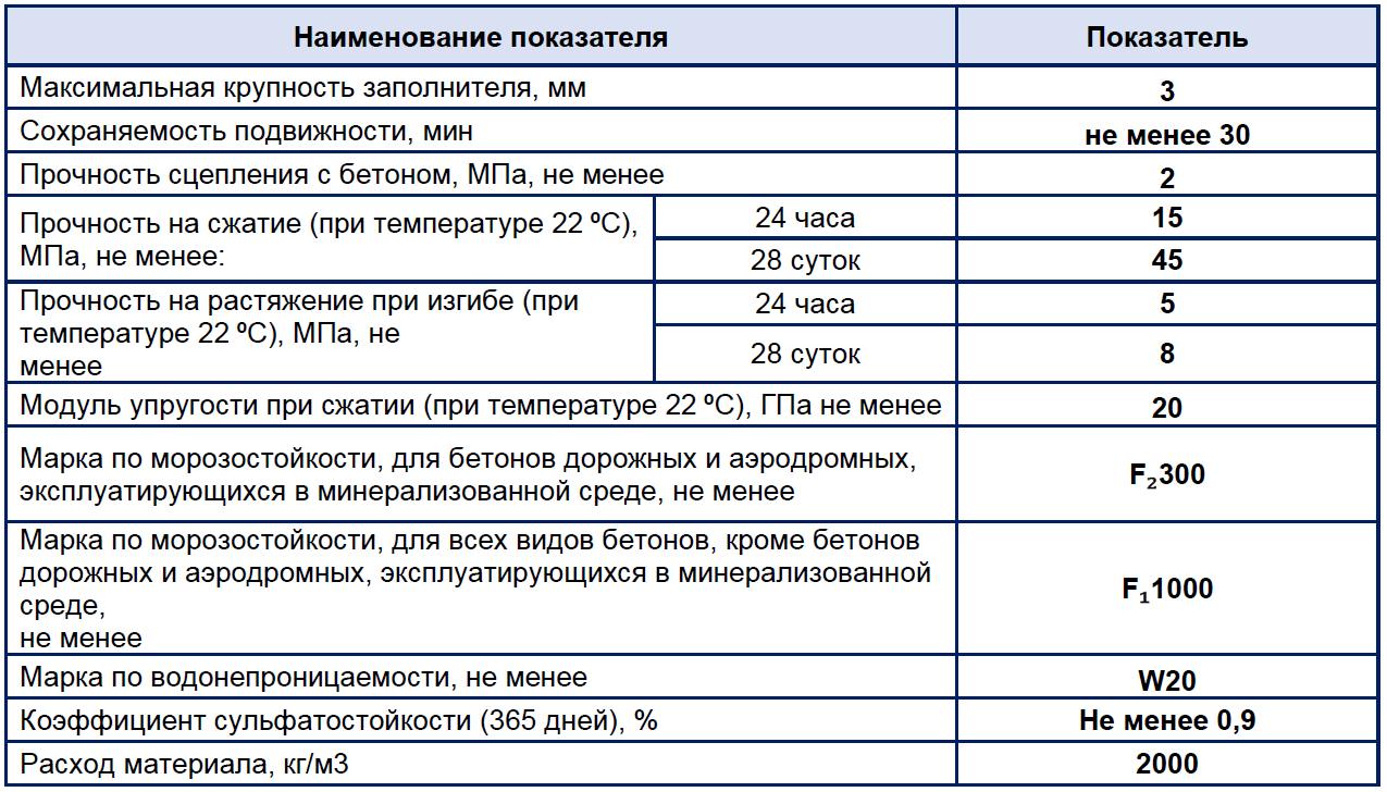 Прочность на сжатие 28 суток: не менее 45 МПа