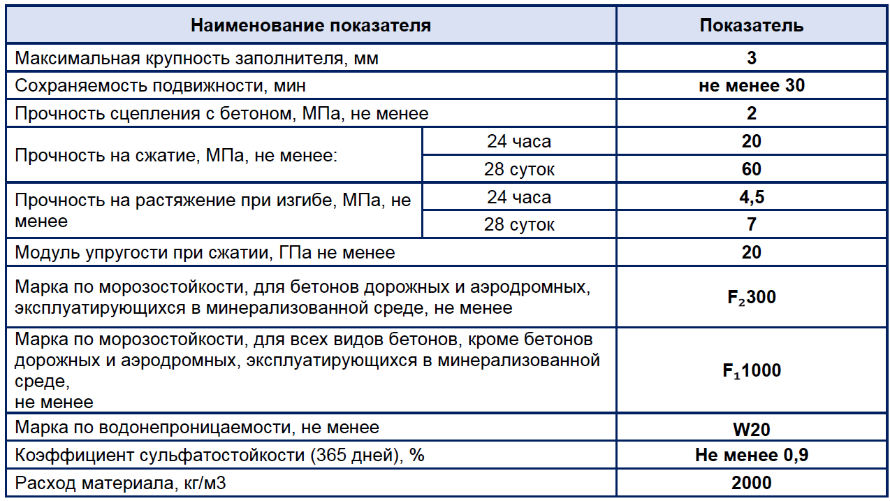 Прочность на сжатие 28 суток: не менее 60 МПа