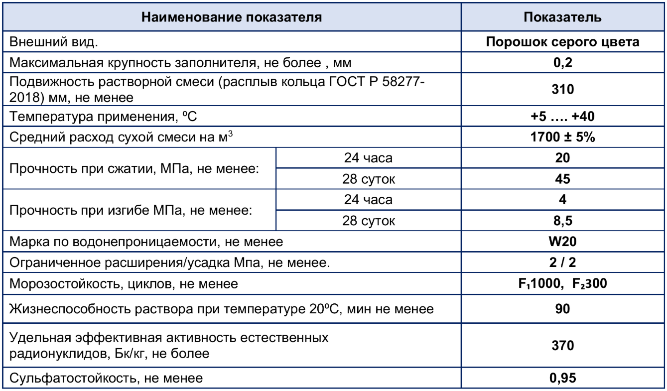 Ограниченное расширение/усадка: не менее 2/2 МПа