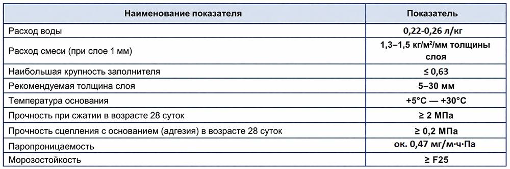 Расход смеси (при слое 1 мм): 1,3–1,5 кг/м2/мм толщины слоя